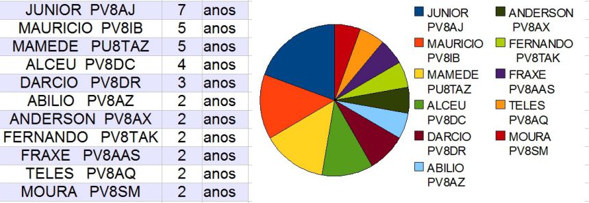 | ALCEU PV8DC | MAURICIO PV8IB | ABILIO PV8AZ | FERNANDO PV8TAK | 2018 ~ 2019 | VEJA ATA |