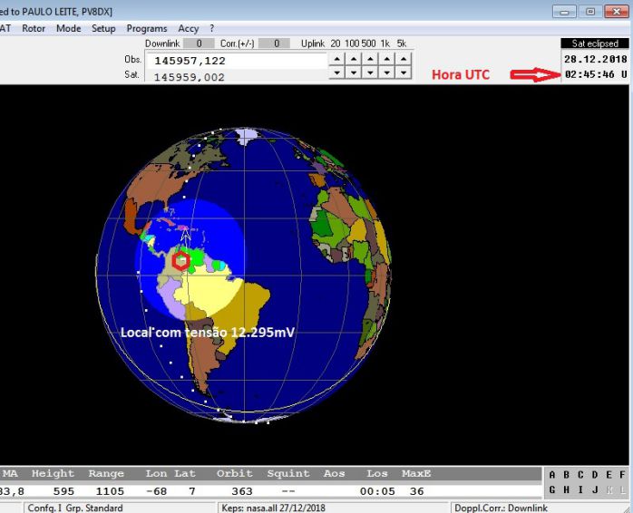 A primeira informa que ao se aproximar de sua posição, o satélite em VHF estará em média 3KHz acima. Devido o efeito Doppler. A outra imagem a frequencia é a padrão do transmissor do SAT. E ao se distanciar a frequencia começa a mudar.... chegando no LOS com quase menos 3KHz da QRG padrão do transmissor.