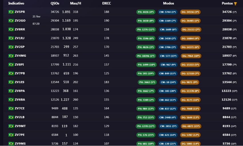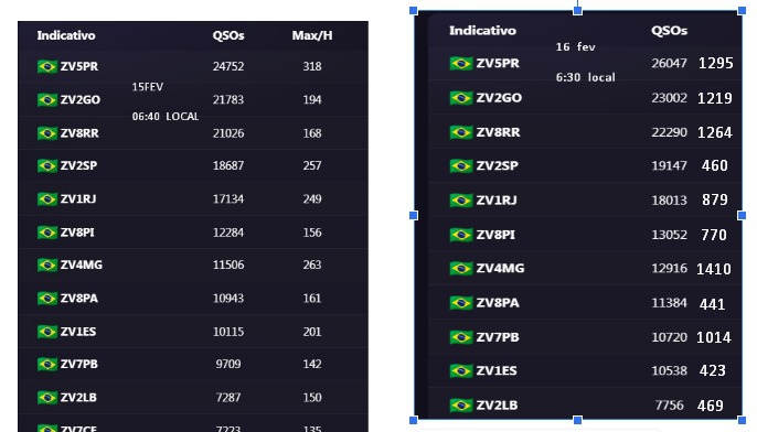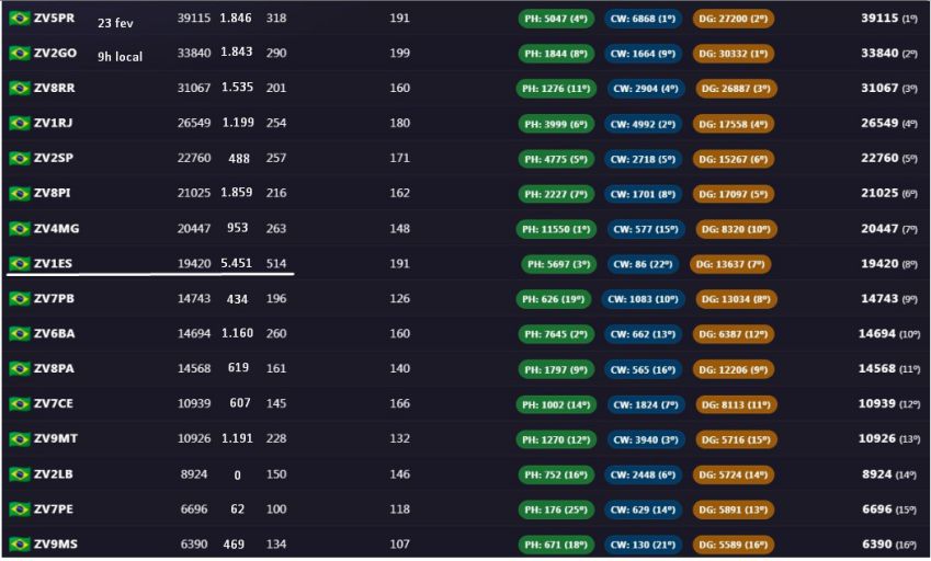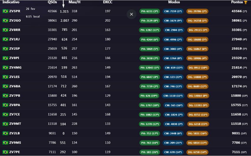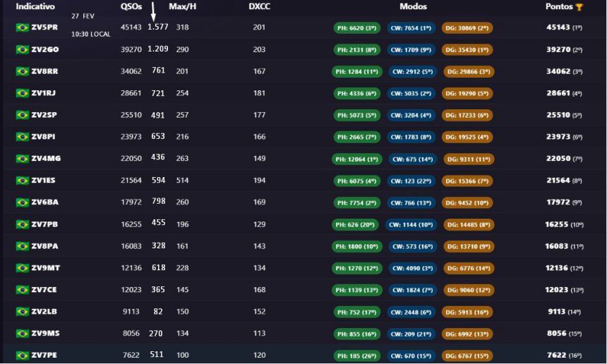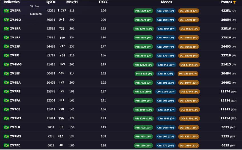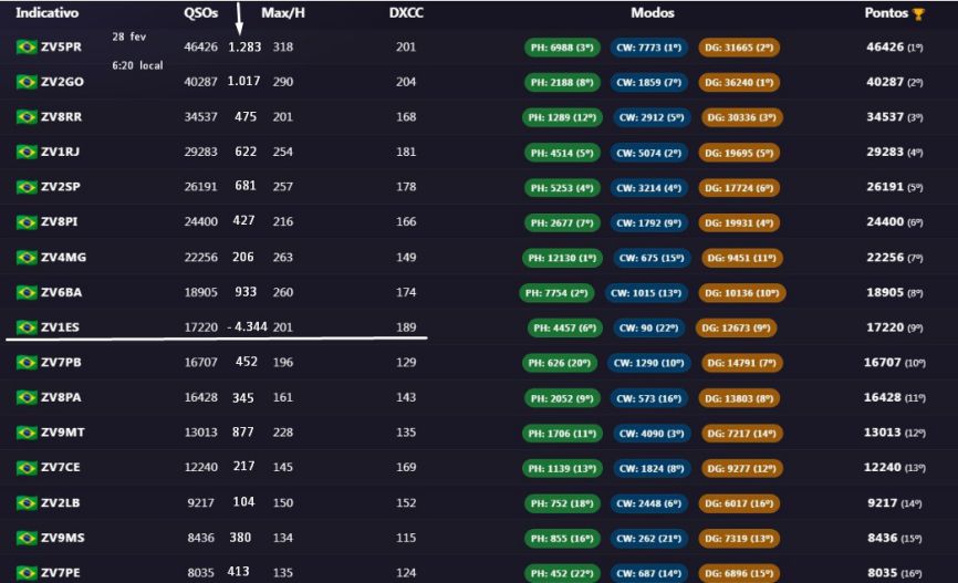 Log do QO-100: Não deve ser misturado com o log geral. Parte do Brasil não tem cobertura do satélite, o que gera uma desigualdade na competição. GEO é 24h, sem depender de propagação, é outra categoria.