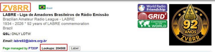 Veja ZV8RR no QRZ.,.... Mais de 200 mil visualizações