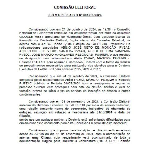 Clique na imagem para ler todo o comunicado em PDF